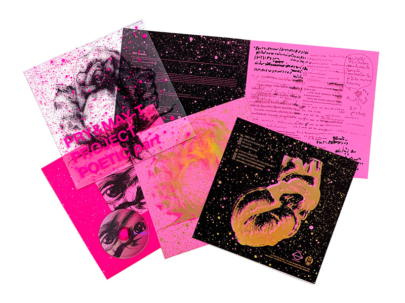 I selected materials that will affect a variety of dimensions of seeing and touch, whether it is a shiny PVC jacket, able to see through from all sides. I impressed many unique characteristics of this paper, such as fluorescence pink, matte texture, fluffy like a drawing paper. These impressed me from the first time I saw and touched it. The keyword of this album is P, which comes from `pink’. And the selection of Mermaid Neo Pink paper for every part of the package.
