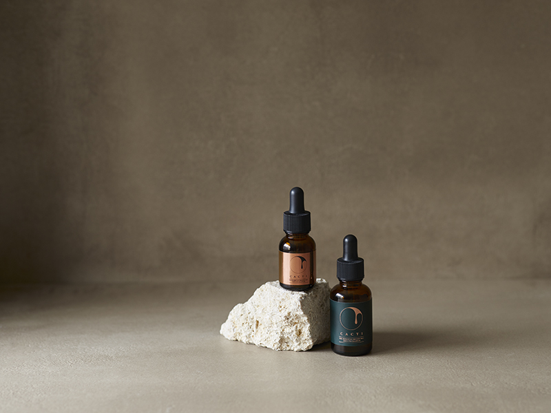 - CACTI(カクティ)は、ウチワサボテンの種子から採れる希少な美容オイル。「マットなダークグリーン」と「メタリックカッパー」のコントラストで、「自然由来の成分が持つ力」と「高品質」を表現しました。