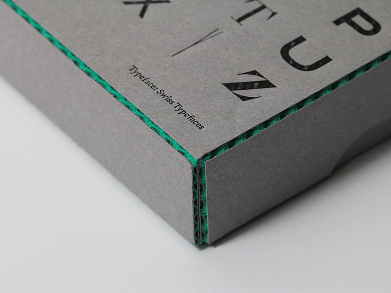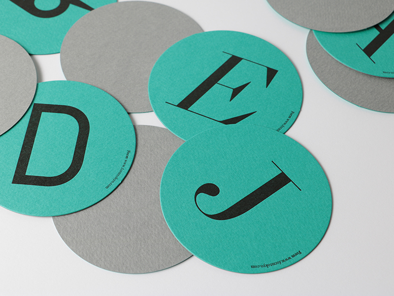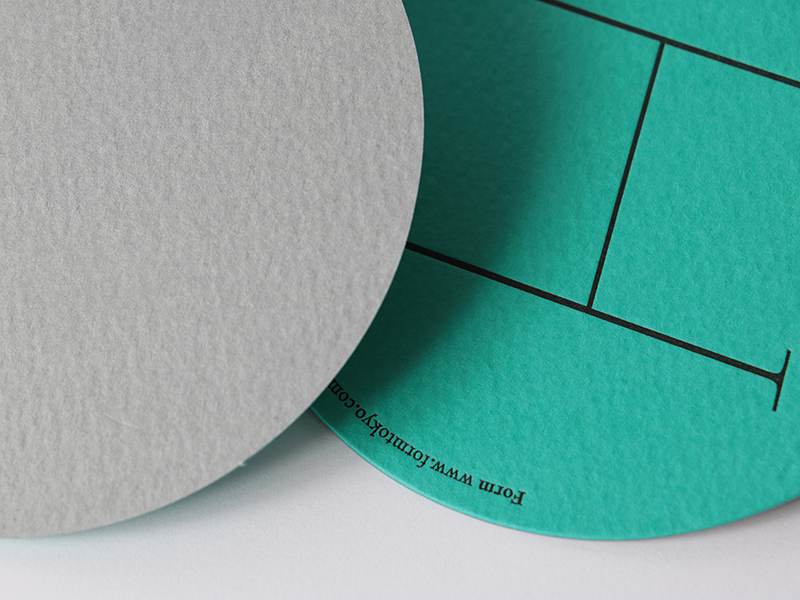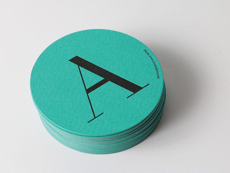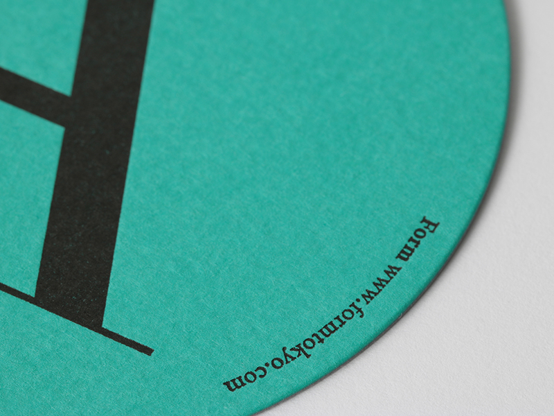 - FormでコラボレーションしたSwiss Typefacesの書体をビビットな色合いで表現するためコースターは「マーメイド」のターコイズを、「ファインフルート」は箱の上品なイメージにデジタルフォントを木版で印刷したかのような表現をするため選びました。(丸山新さん)