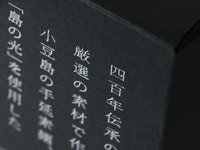 - 黒い紙の中でもしっかり黒く、またパッケージにも適していることから黒気包紙を選びました。より高級感を演出するために、当初はグロスタイプ(黒気包紙C-FS)を検討したのですが予算がハマらず…U-FSにグロスニスを加工することでC-FSのようなツヤ感を加え、課題を解決しました。(菅村将哉さん)