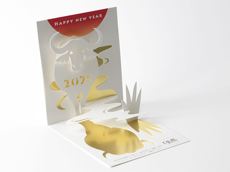 POP-UP式の絵本やカードを制作されている、r.p.mデザインスタジオさんにいただいた年賀状をご紹介します。