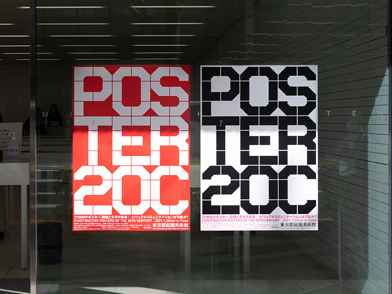 - 東京都庭園美術館で2021年1月30日に開幕した「20世紀のポスター[図像と文字の風景]―ビジュアルコミュニケーションは可能か?」。株式会社竹尾のポスターコレクションの中から20世紀ヨーロッパ・アメリカの構成的ポスター130点が並ぶポスター展だ。アール・デコ様式の本館(旧朝香宮邸)に展示されるポスターは特に「図像と文字の風景」と呼ぶにふさわしく、キャッチコピーなどはなしに、幾何学的形態とイベント名称・日時・場所などの文字だけで、ミニマルに構成されている。「20世紀のポスター」展の告知ポスターも“POSTER20C”という展覧会の内容を抽出したワードにより、ミニマル且つ大胆に表現した。