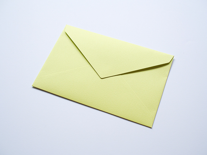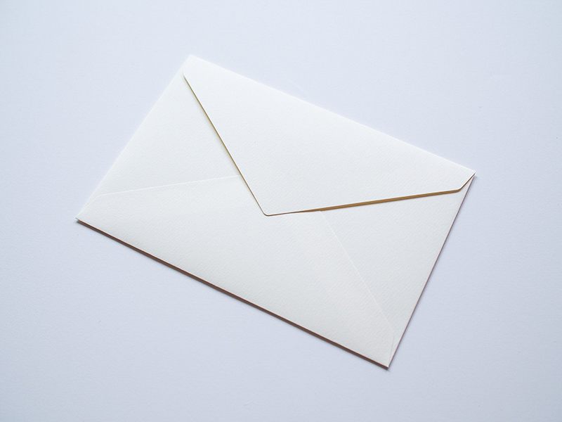 (1)お問い合わせメールフォームから下記の項目をご記入の上、お問い合わせください。 ・ 封筒の形と規格(例:ダイヤ貼の洋2封筒) ・ ご希望の納期があればお書きください