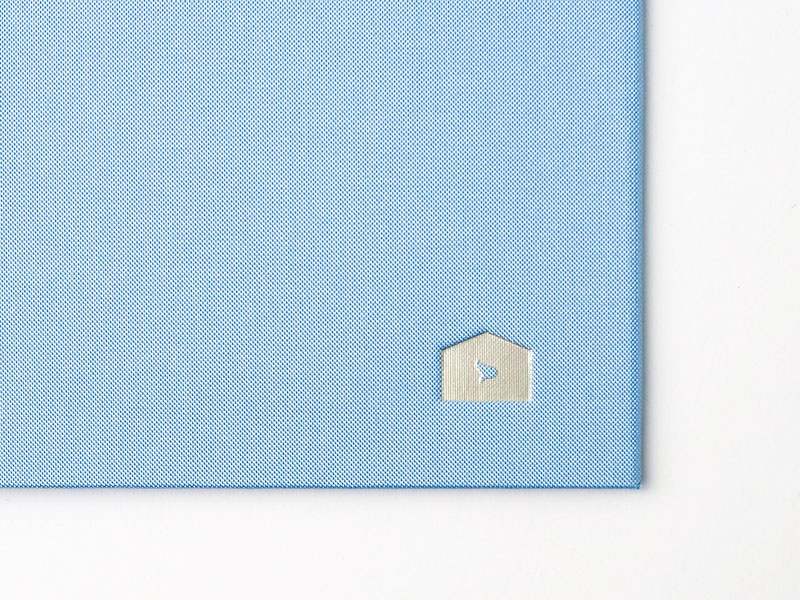 箔押しで施したロゴマーク表紙には、シンプルなロゴマークを箔押しで施しています。 くろ、あかは金箔、あおは銀箔、きん、ぎんは白の顔料箔です。
