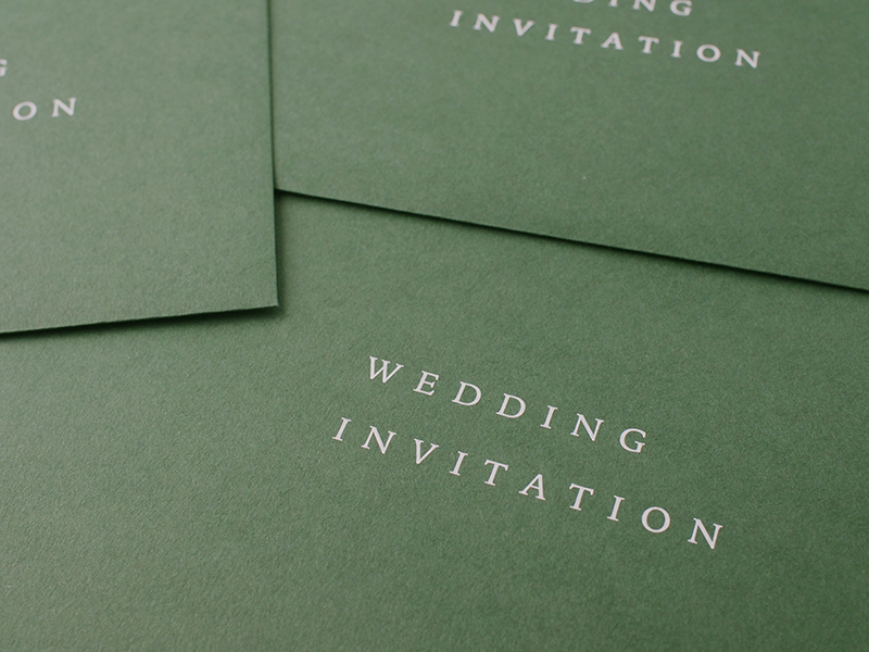 フィリピン ボラカイ島でのリゾートウエディングの招待状の封筒です。海辺ではなく森での披露宴になるのでフォレストグリーンを選定。 |
