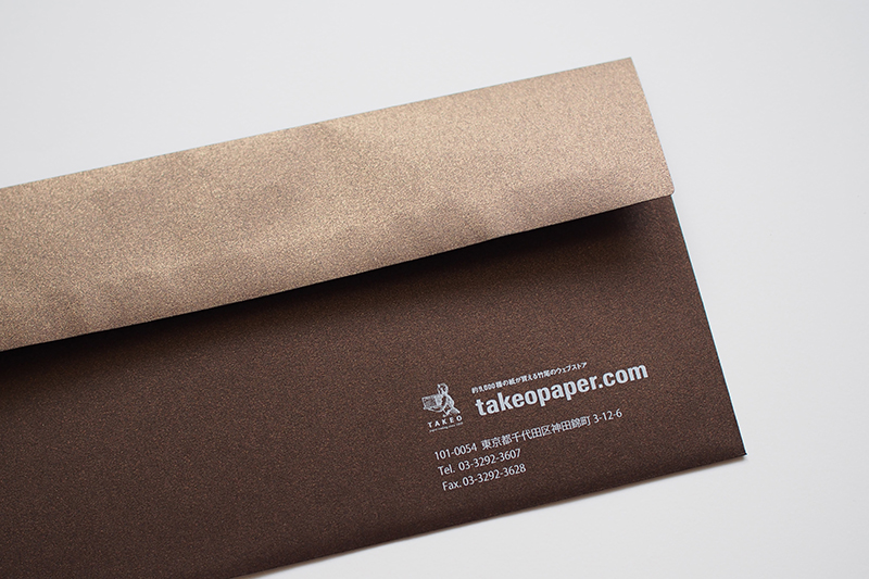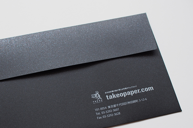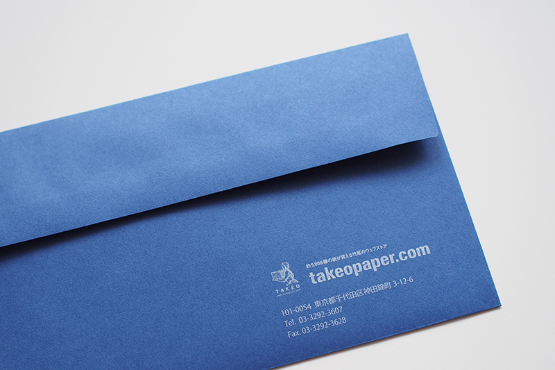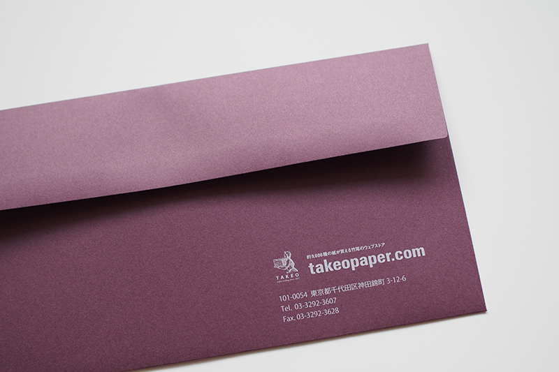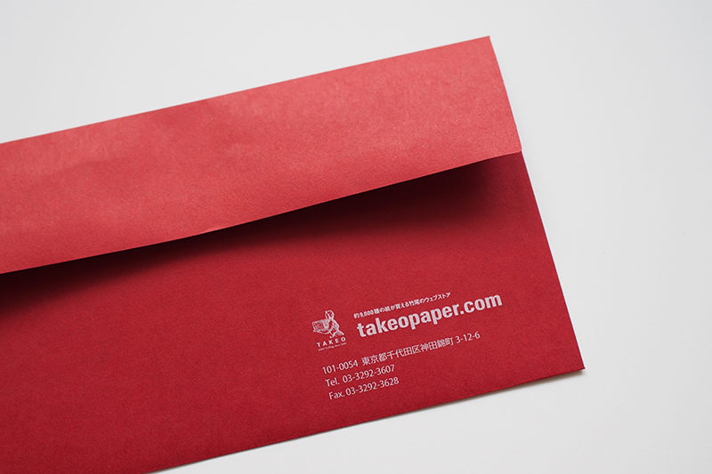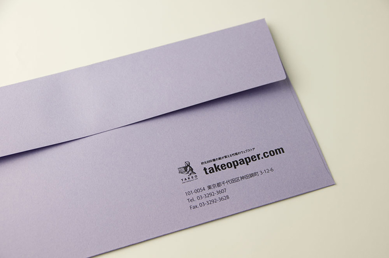 ファインペーパーを使用した弊社オリジナルの「竹尾デザイン封筒」に、50袋~500袋の小部数でデジタル印刷による名入れを承ります。