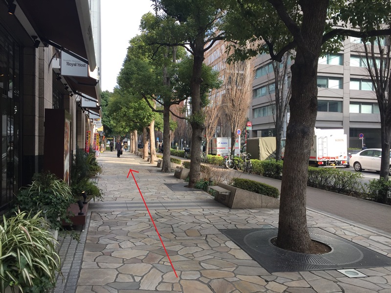 ①A9出口を出ると、すぐ左手にRoyal Hostがあります。Royal Hostを左手にした状態で直進してください。