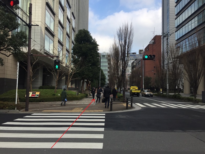 ②一つ目の信号を渡り、そのまま直進してください。